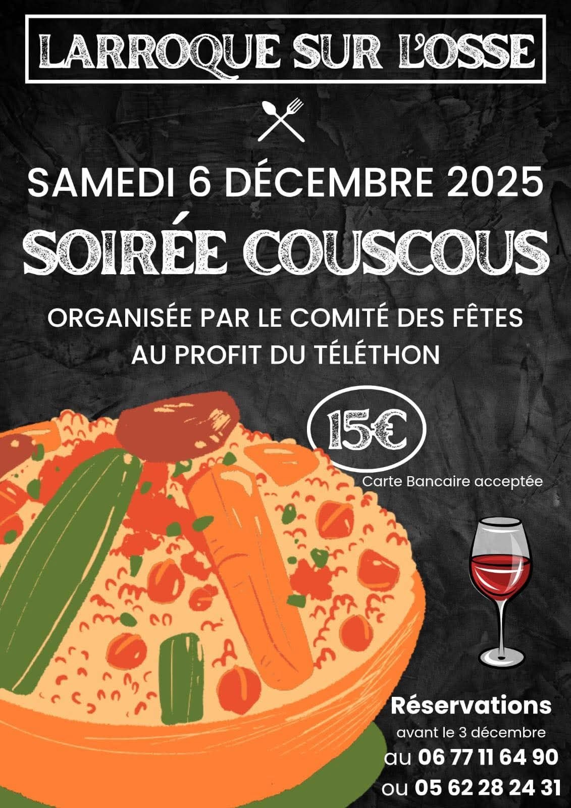 Cette soirée Couscous est organisée par le Comité des fêtes de Larroque sur l'Osse.