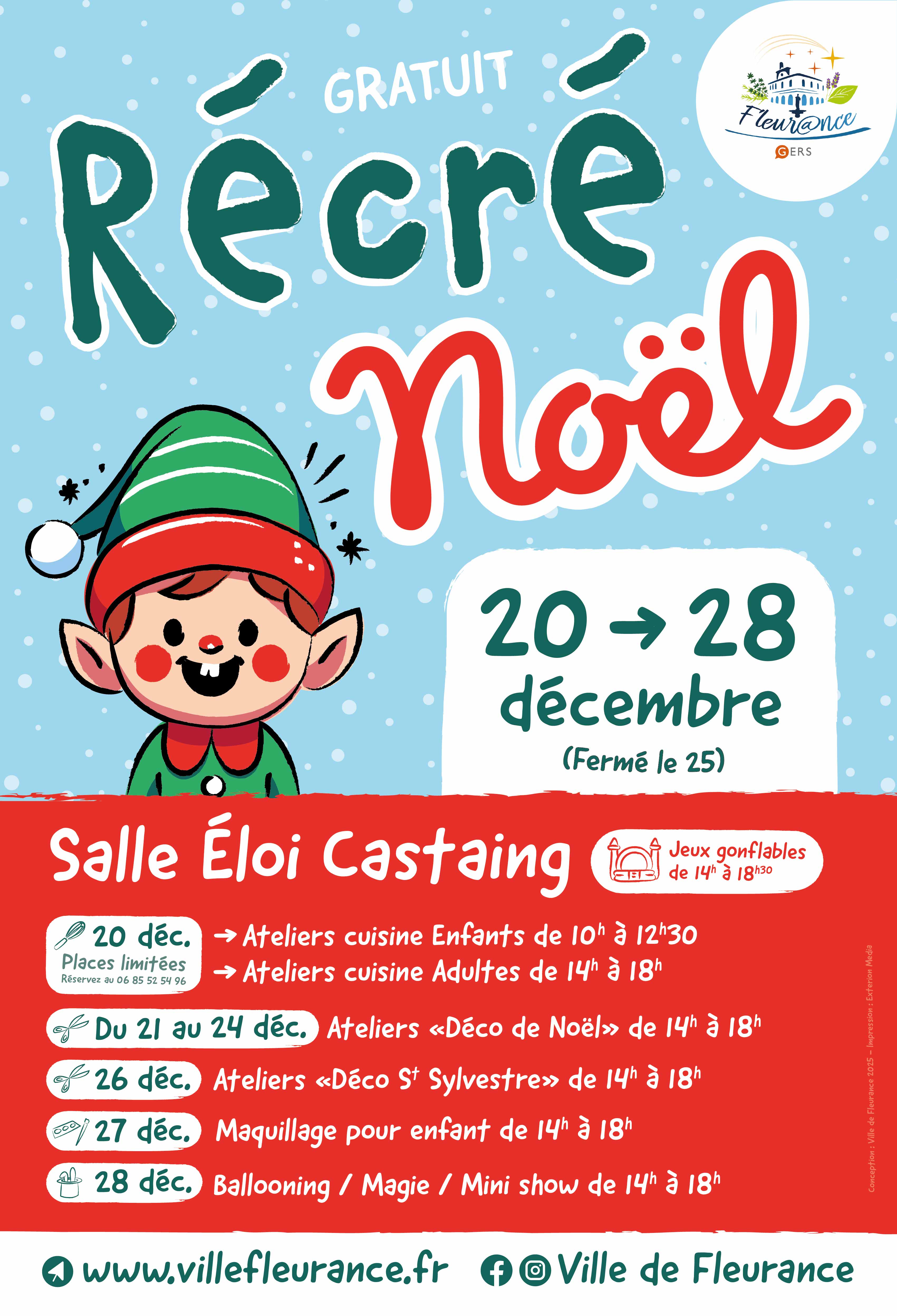 En parallèle des nombreuses manifestations qui rythmeront le mois de décembre, « Récré Noël » sera comme toujours au rendez-vous du 20 au 28 décembre (fermeture le 25) avec des structures gonflables, des spectacles de magie et divers ateliers gratuits.