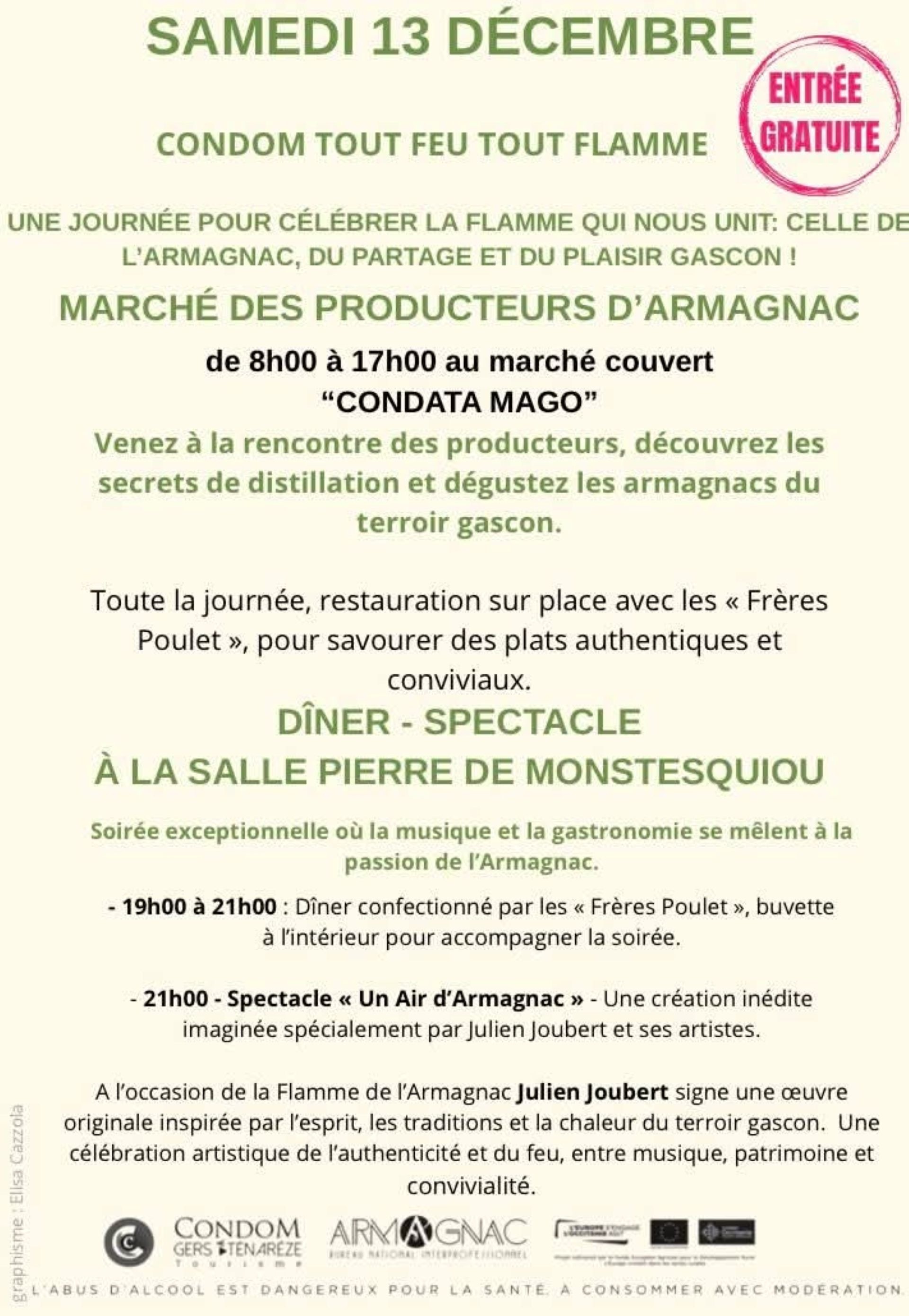 - À 21h, Spectacle " Un air d'armagnac" de Julien Joubert.