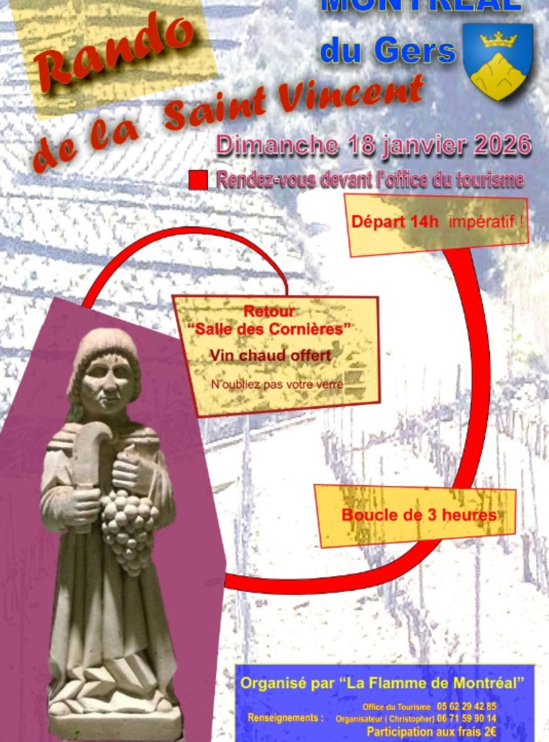 On chausse ses baskets pour cette traditionnelle randonnée à Montréal du Gers, organisé par la Flamme de Montréal. Rendez-vous devant l'Office de Tourisme, départ impératif à 14h.