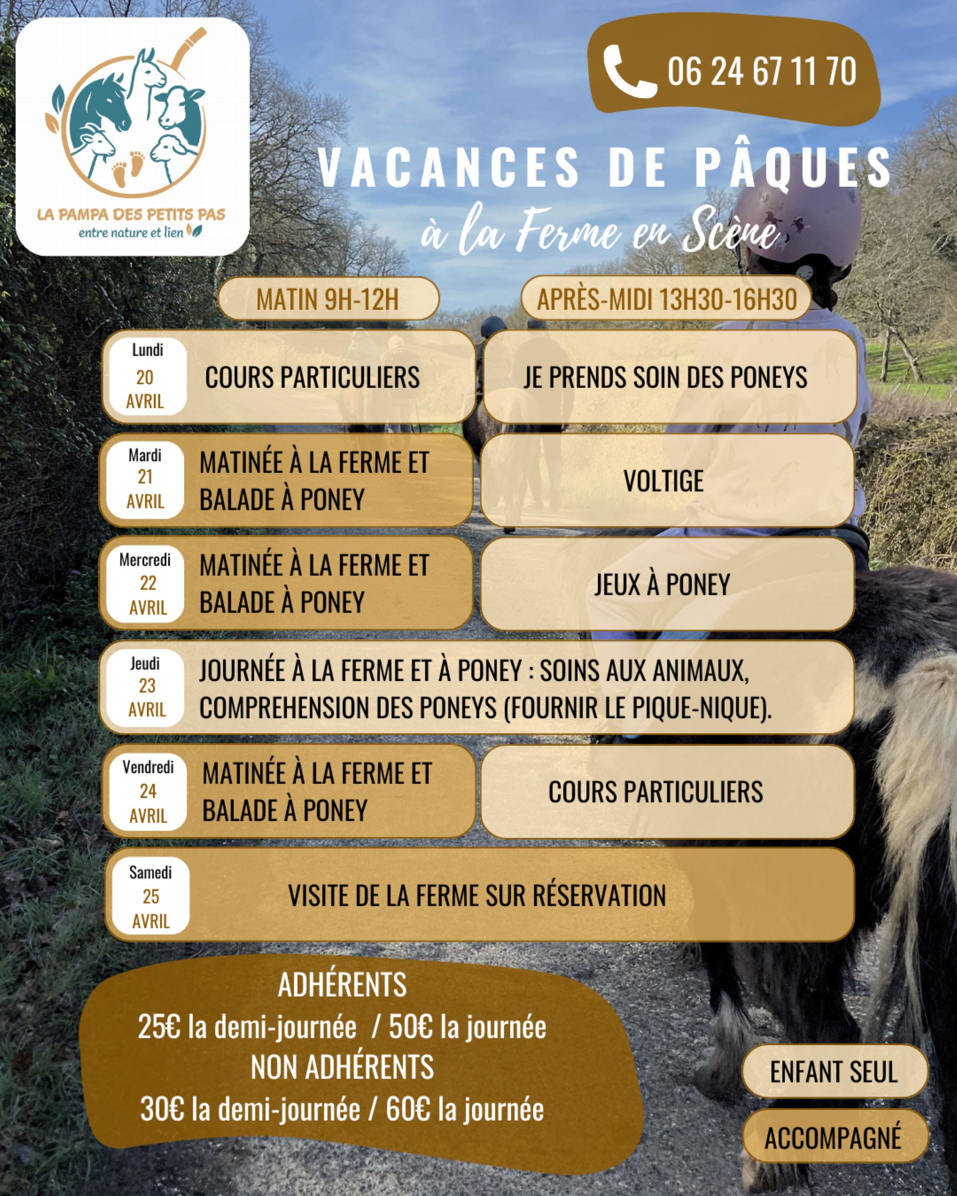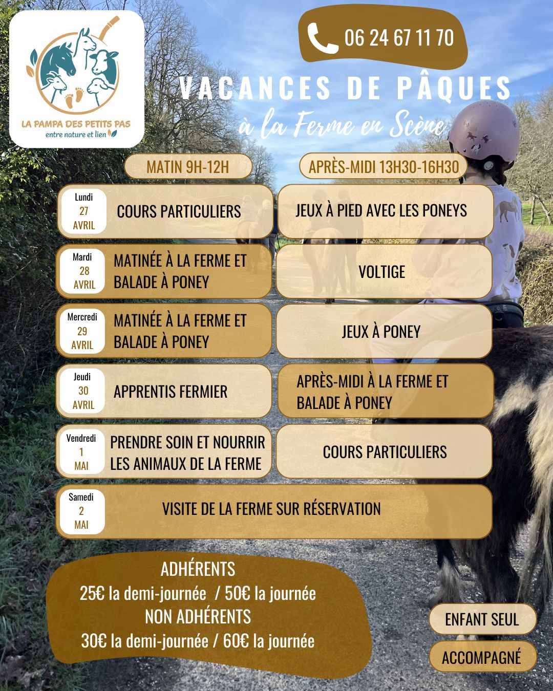 Balade à poney, voltige, on découvre la ferme, on joue les apprentis fermiers.