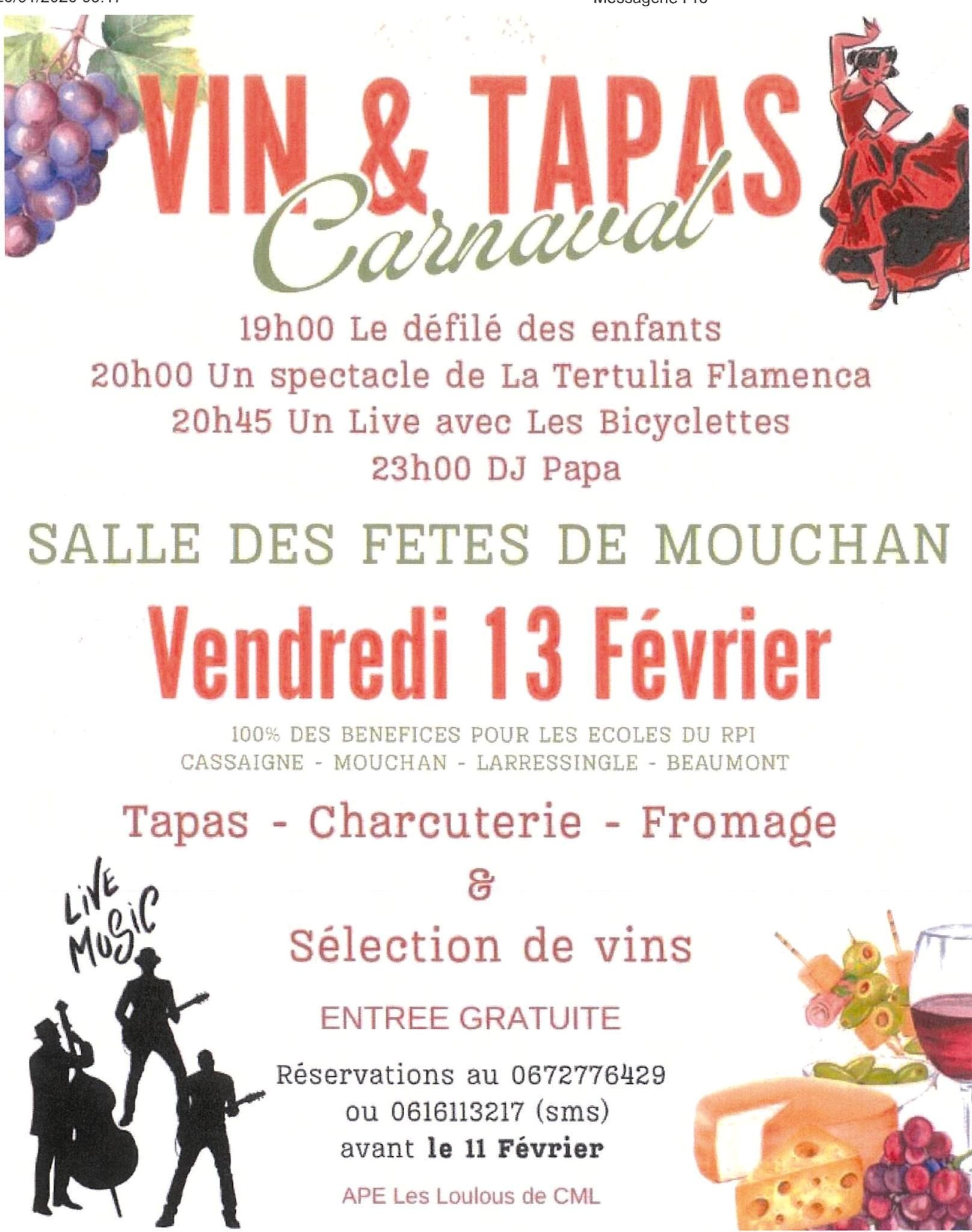 Réservations jusqu'au 11 février au 06 72 77 64 29 et/ou 06 16 11 32 17 (SMS).