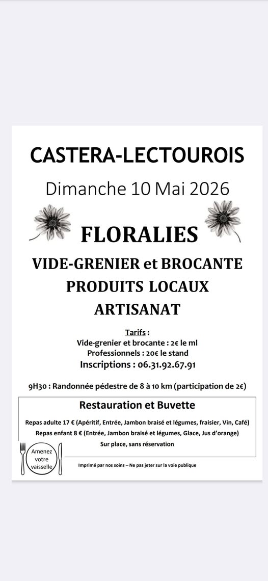 Venez flaner dans les ruelles de Castéra Lectourois lors de notre Floralies, vide-greniers, brocante, produits locaux et artisanat,