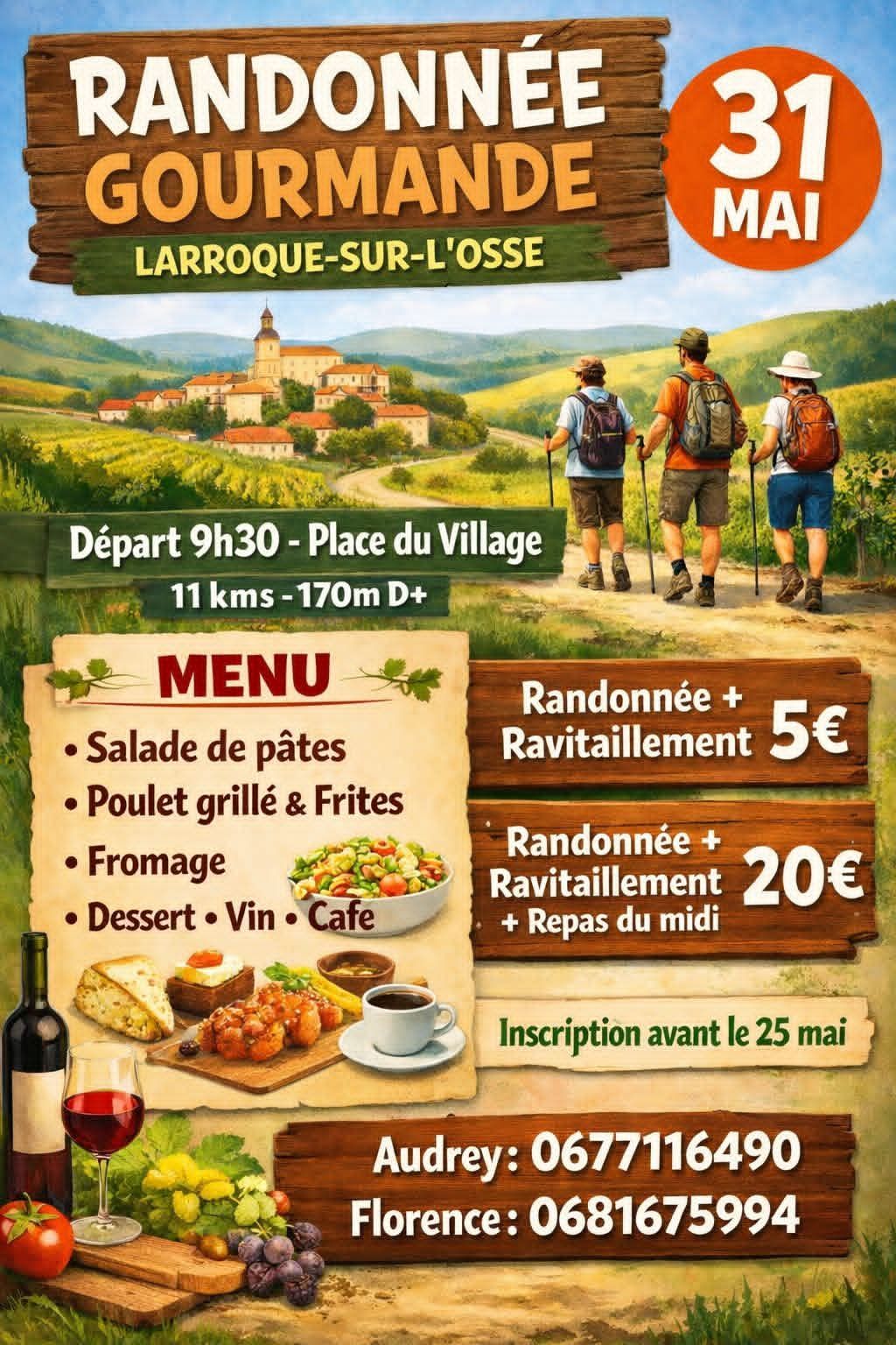 A vos agendas, les festivités Larroquoises commencent. Cette randonnée est organisée par le Comité des fêtes de Larroque sur l'Osse autour du village.