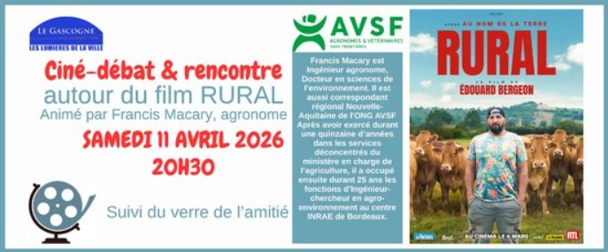 Le Gascogne propose cette soirée à 20h30 : avec la projection de " Rural ", animé par Francis Macary, agronome.