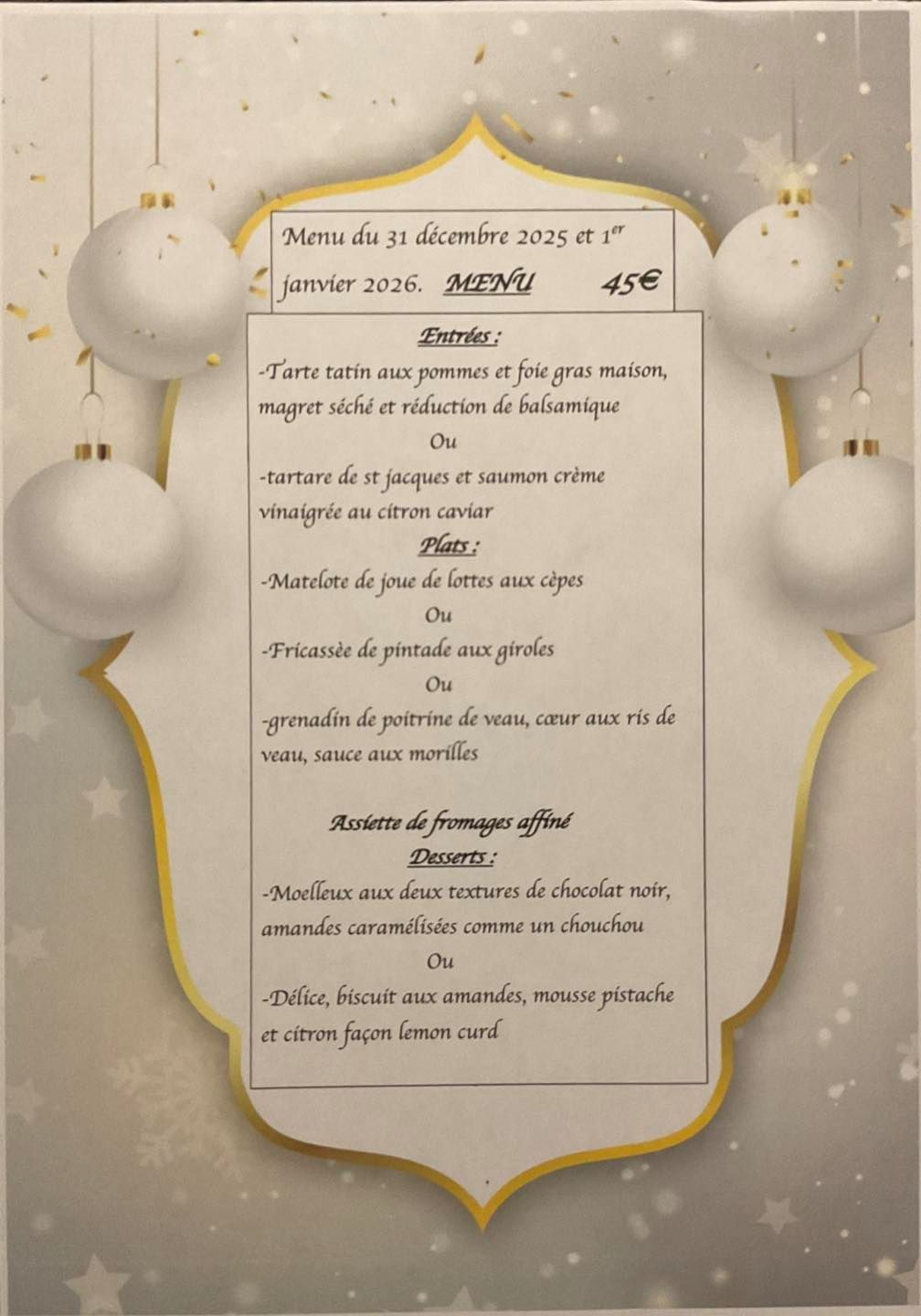 Ce menu est proposé pour le réveillon du 31 et le 1er Janvier.
