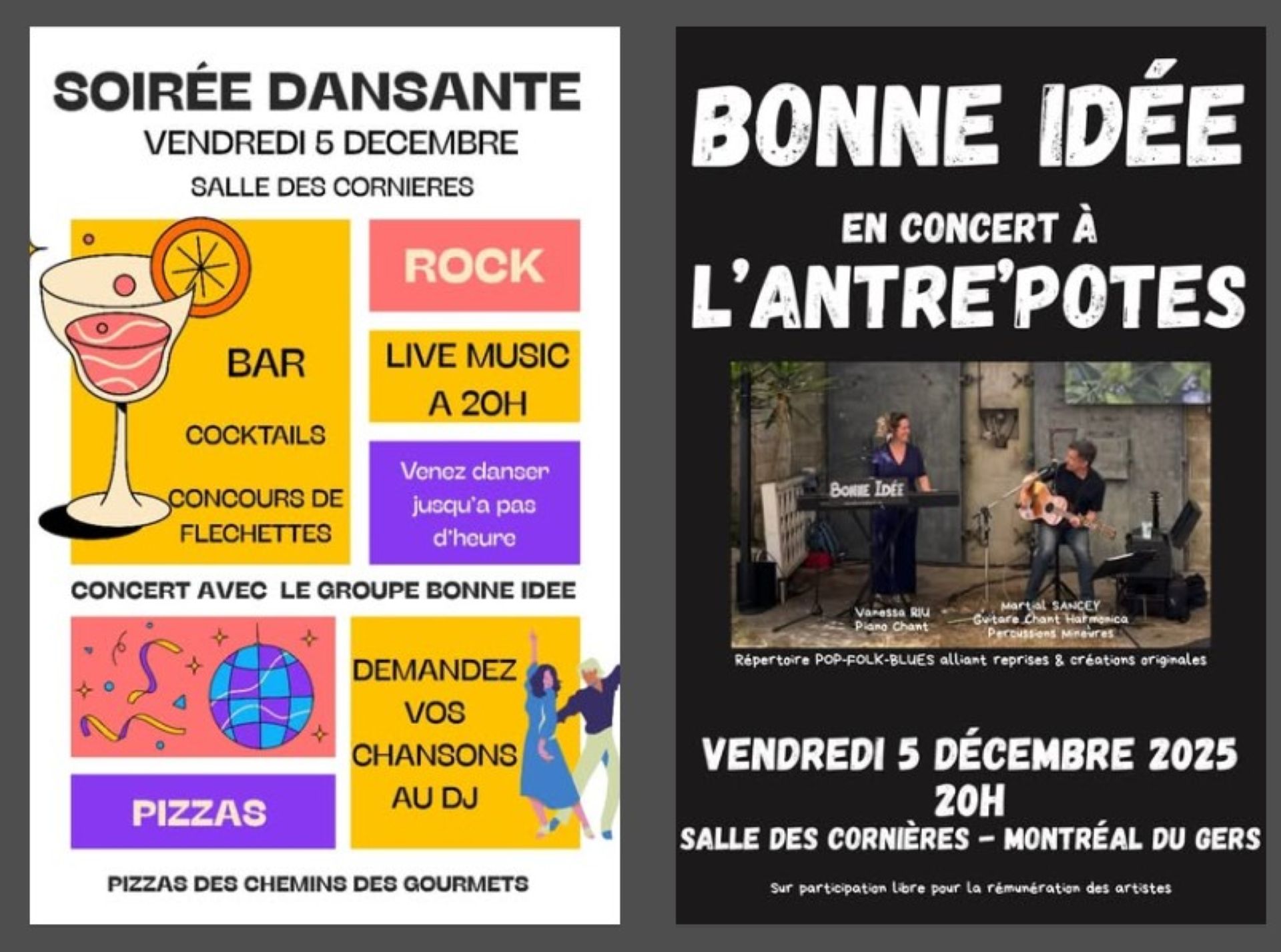 Soirée avec concert à l'Antre'Potes, au coeur de la bastide de Montréal-du-Gers.