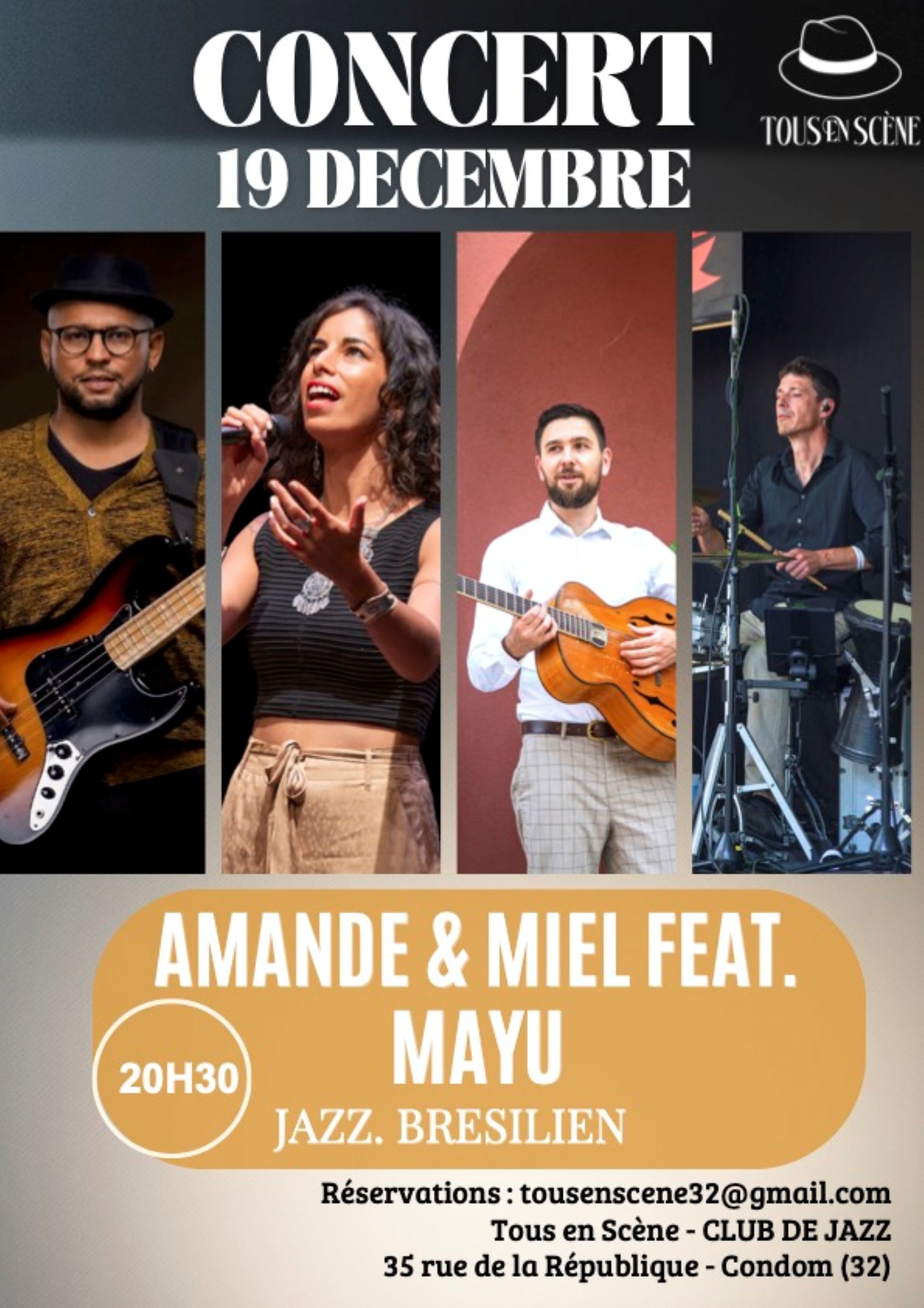 On retrouve avec plaisir Amande & Miel Quartet à Tous en scène à Condom de 20h30 à 23h.