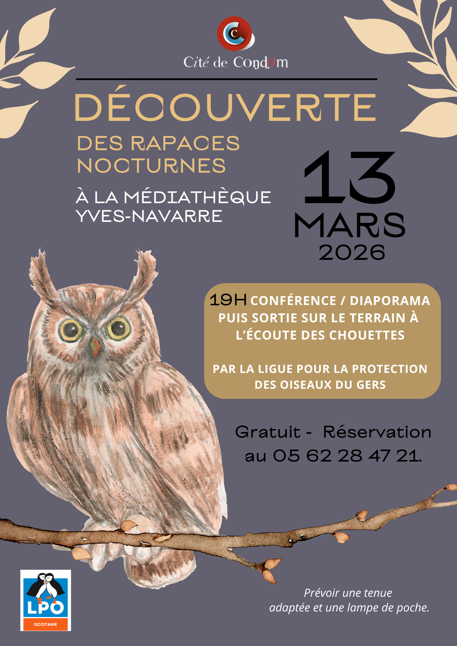 Venez partager un moment autour rapaces nocturnes, au programme une conférence/diaporama et une sortie nocturne, à Condom dès 19h !