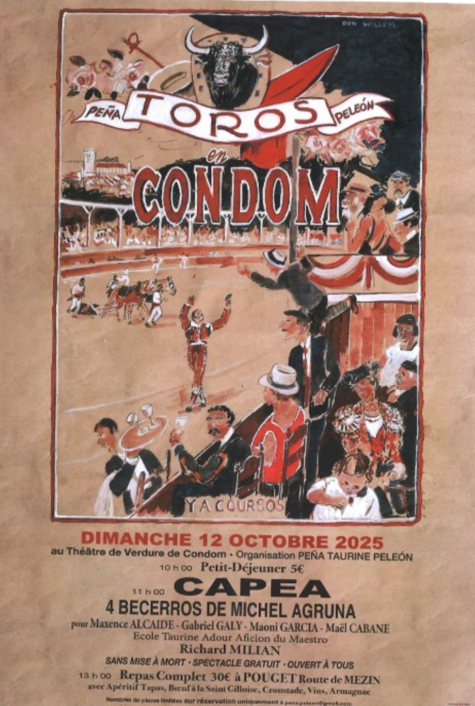 - À 13h, Repas, au lieu-dit : Pouget (route de mézin) : Apéritif/tapas, Boeuf à la St Gilloise, Croustade, vins/Armagnac.