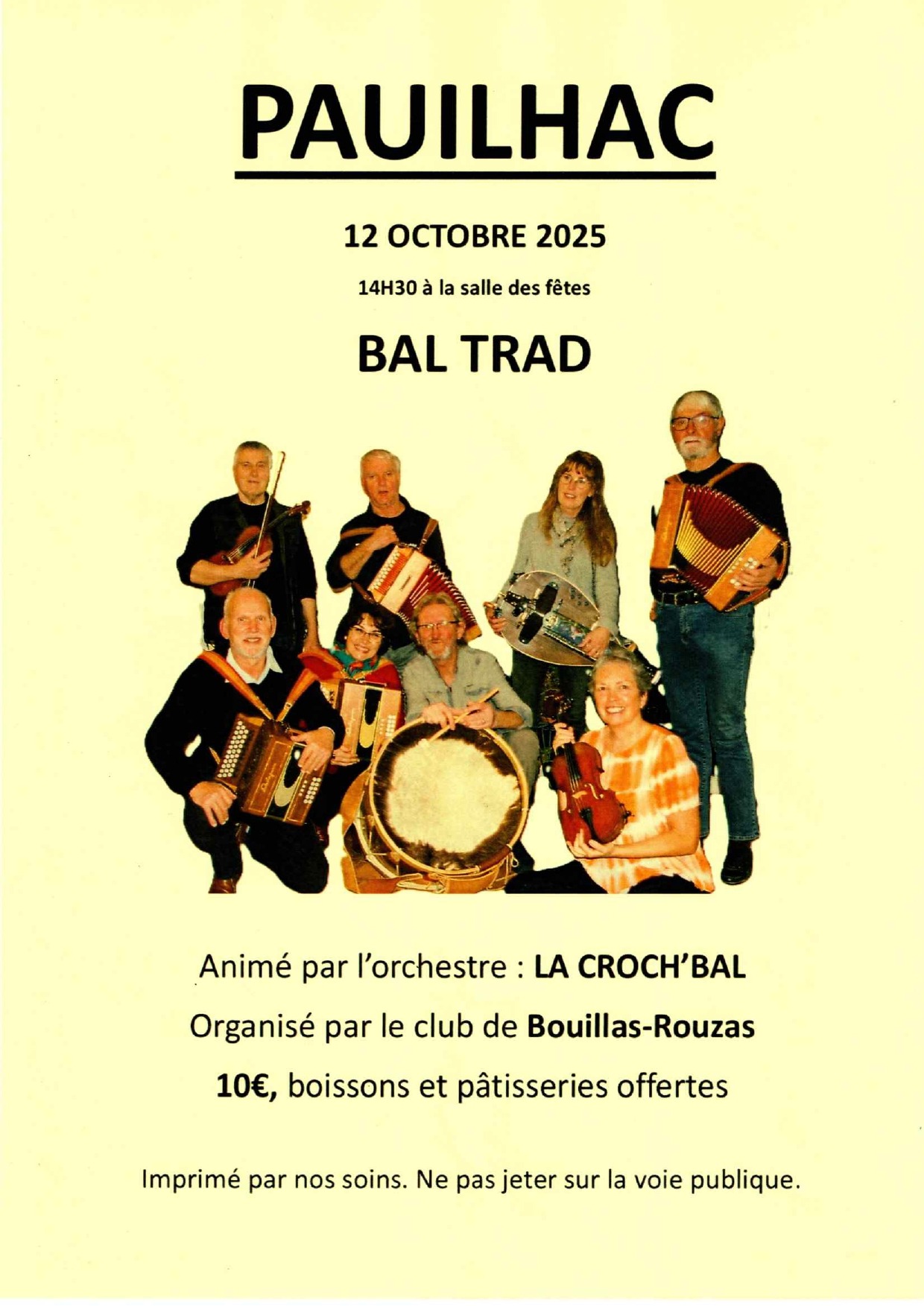 Animé par l’Orchestre La Croch’Bal, ce bal vous plongera au cœur de la culture gasconne, entre rondeurs des airs, énergie des danses collectives et joie de se retrouver ensemble.
