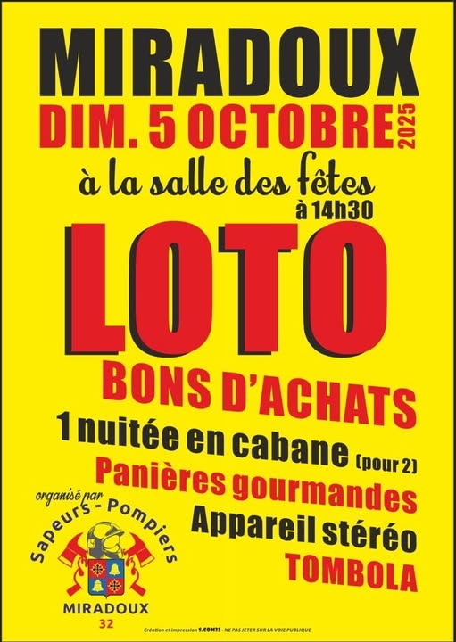 A Miradoux, dans le Gers, les Sapeurs Pompiers vous invitent à participer à leur loto !