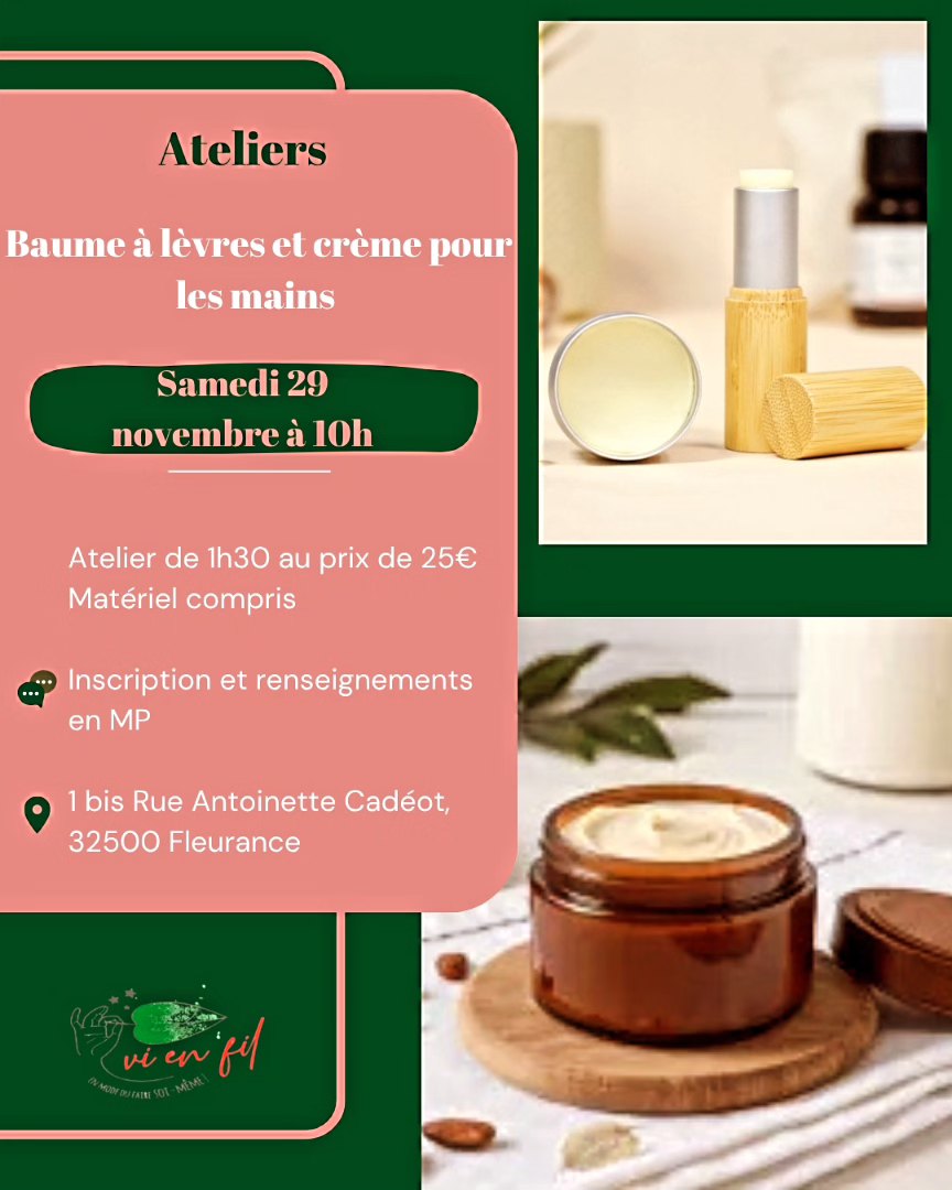 Atelier de fabrication Beaume à lèvres et crème pour les mains à base de produits naturels