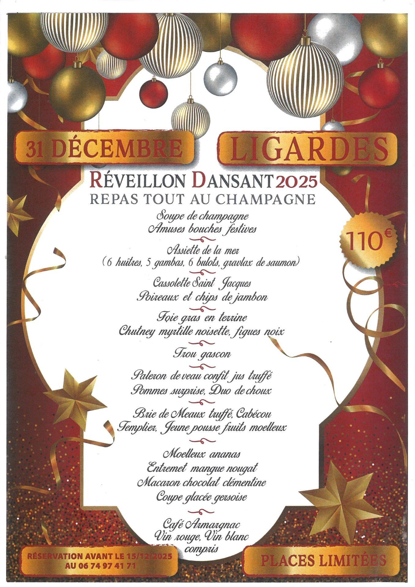 Rejoignez-nous, sur votre 31, pour ce réveillon dansant, tout au champagne à Ligardes !