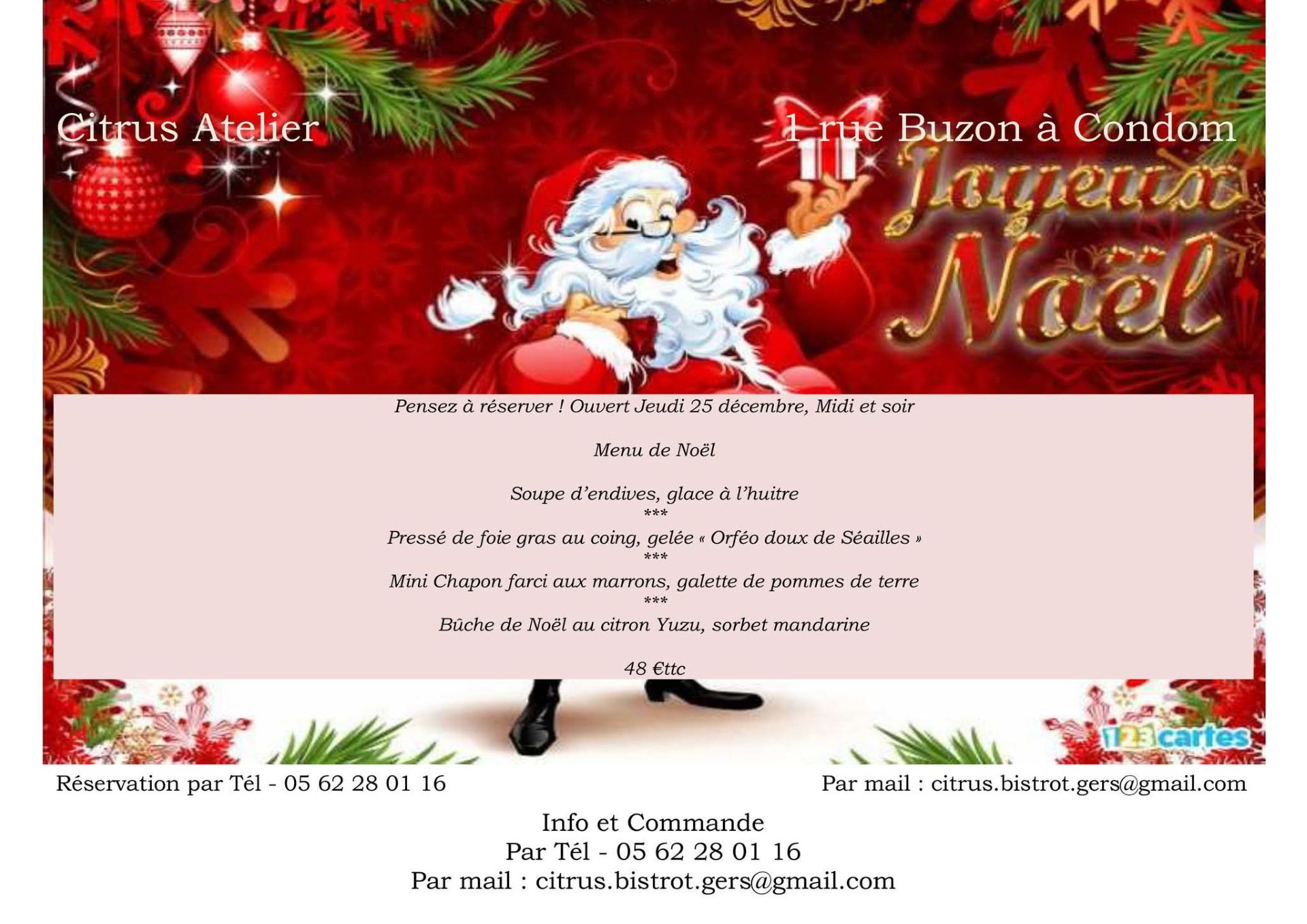 Vous aimez vous retrouver au restaurant pour Noël, le Citrus à Condom vous propose son menu, midi et soir.