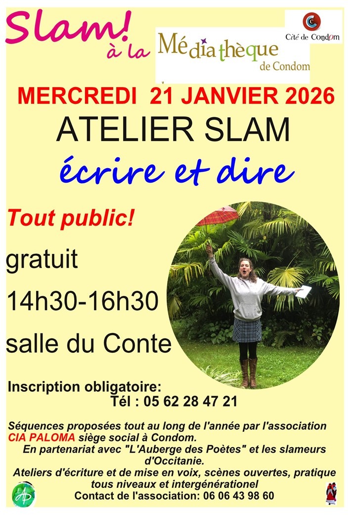 La médiathèque vous donne rendez-vous à 14h30 le mercredi 21 janvier pour le 2ème atelier « slam - poésie ouverte » à la médiathèque.