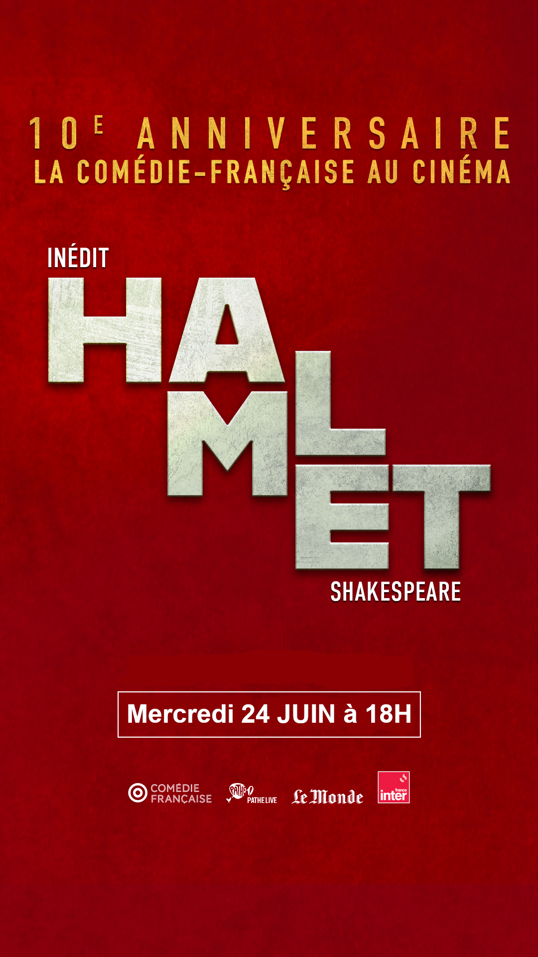 Mercredi 24 juin à 18h : Hamlet, 10ème anniversaire de la Comédie française au cinéma.