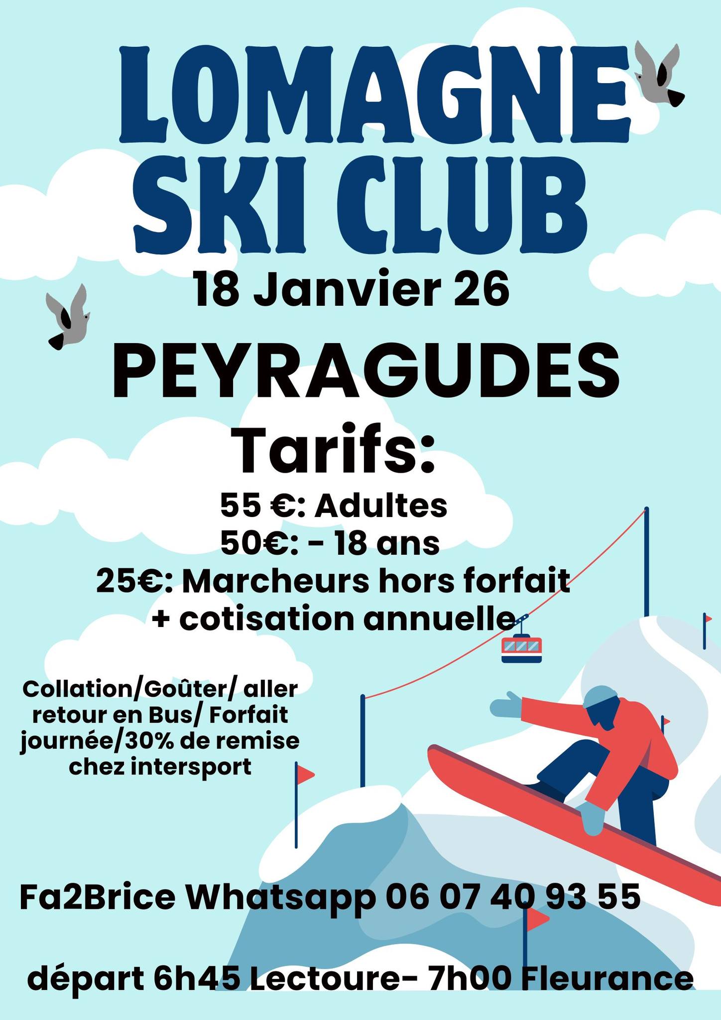 Collation/Goûter/Aller-Retour en bus/Forfait journée/30% de remise chez Intersport