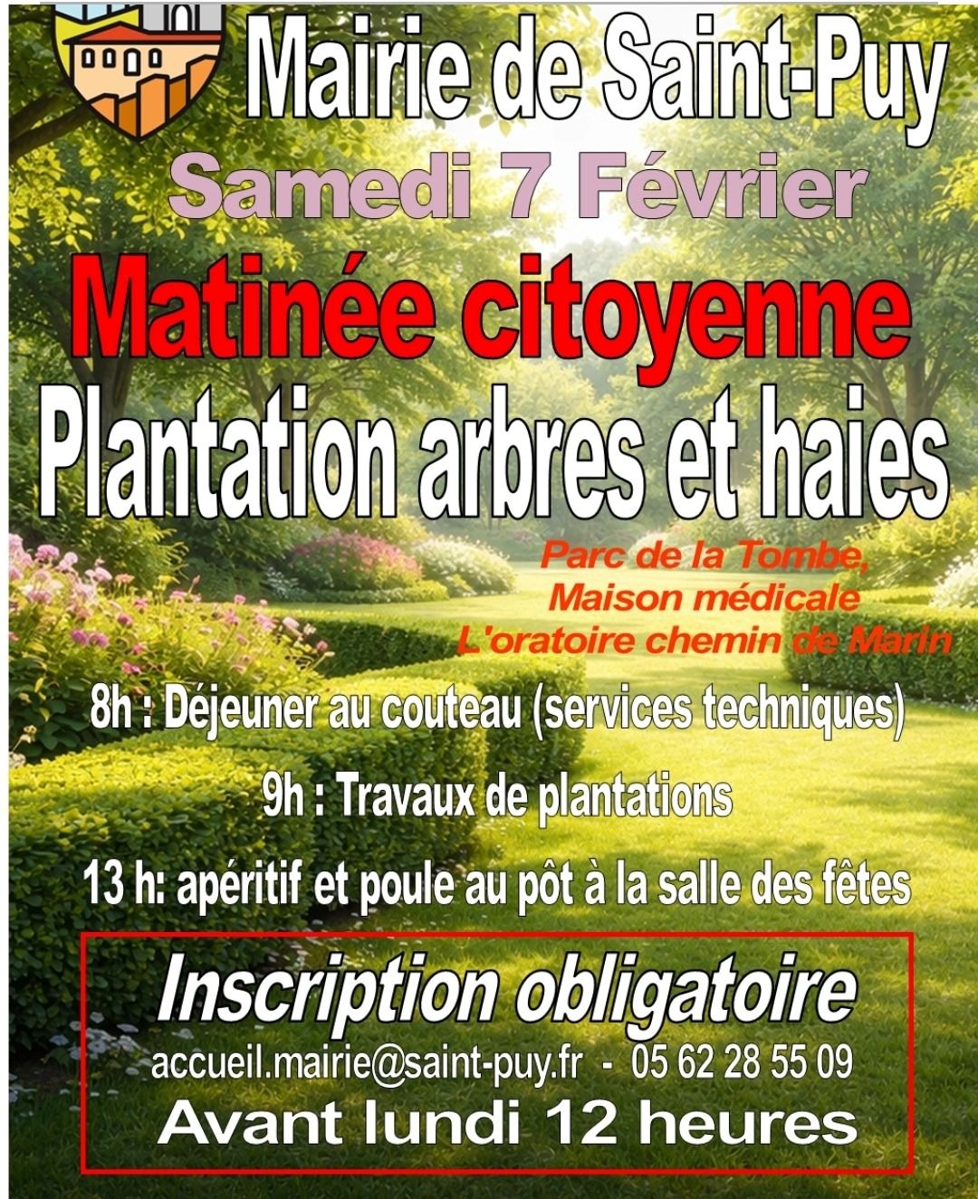 La commune de St Puy organise cette matinée, avec plantation d'arbres et de haies ès 8h.