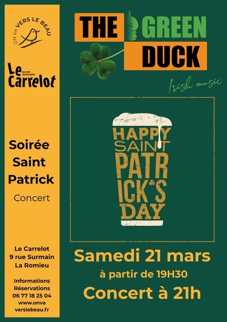 Soirée Saint-Patrick dans la salle "Le Carrelot" à La Romieu avec un concert de The Green Duck - Irish music