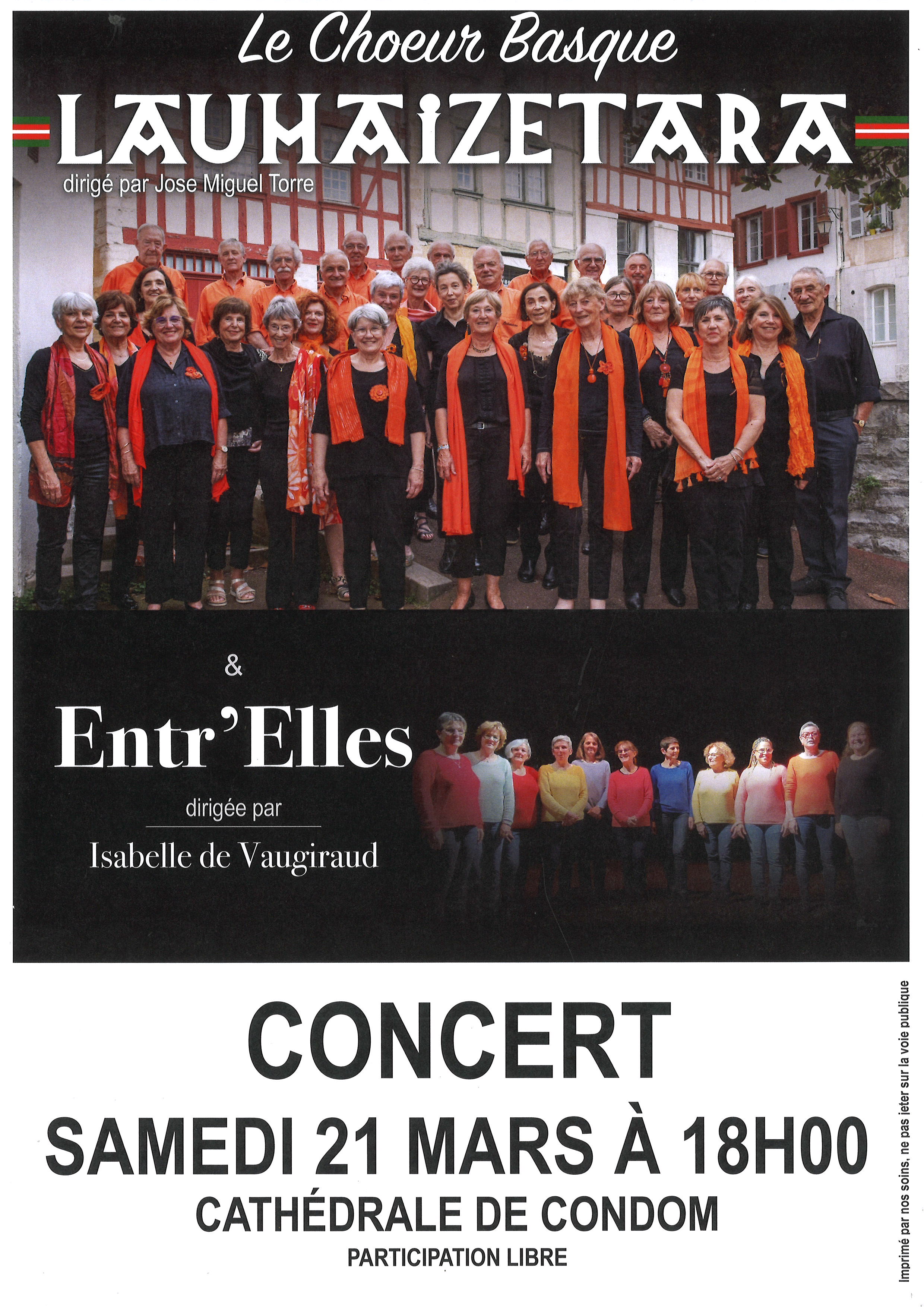 En la cathédrale Saint-Pierre de Condom, venez découvrir les voix du chœur basque Lauhaizetara dirigé par Jose Miguel Torre ainsi que l'ensemble Entr'Elles, dirigé par Isabelle de Vaugiraud.