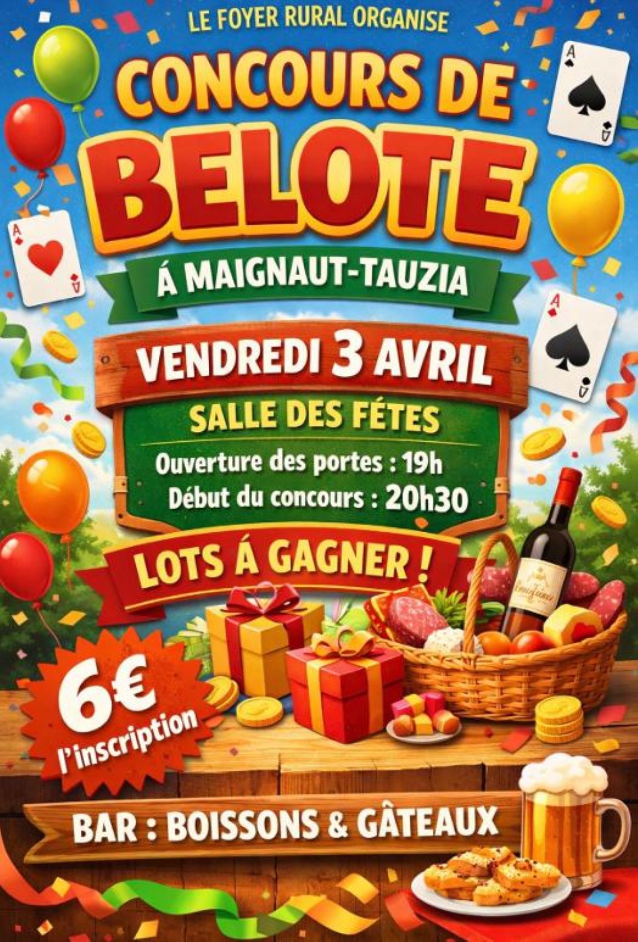 La belote vous démange? Rendez-vous le 3 avril à la salle des fêtes de Maignaut-Tauzia! À la clef, des lots à gagner.