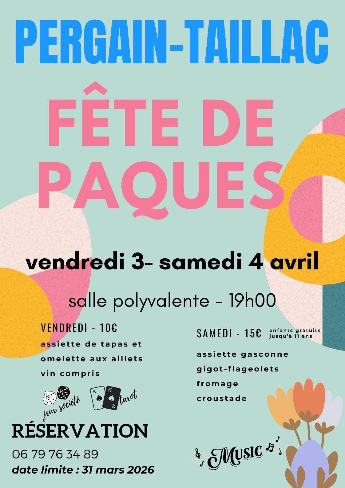 Fête de Pâques à Pergain-Taillac avec repas et animations.