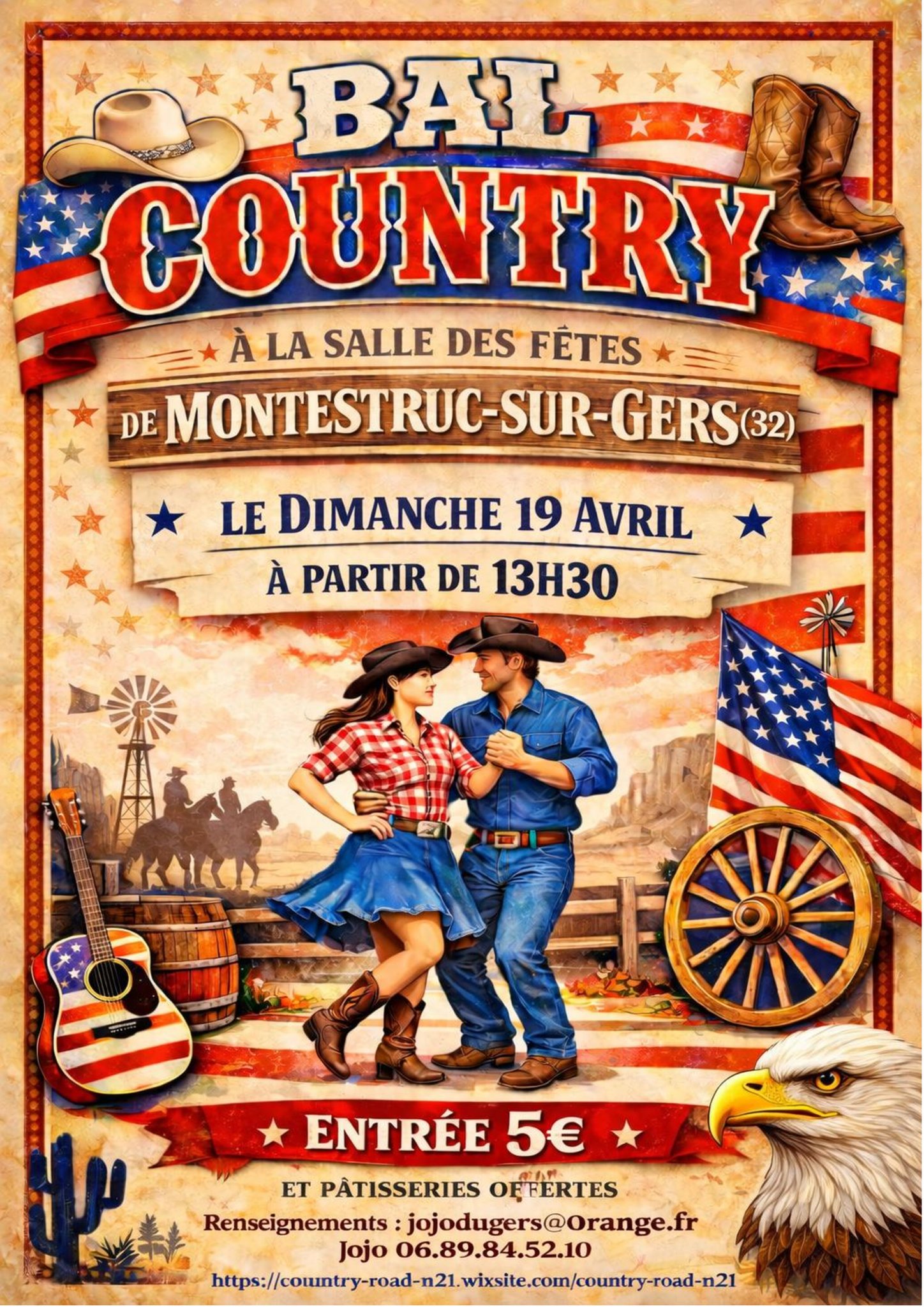 Bal country avec pâtisseries offertes.