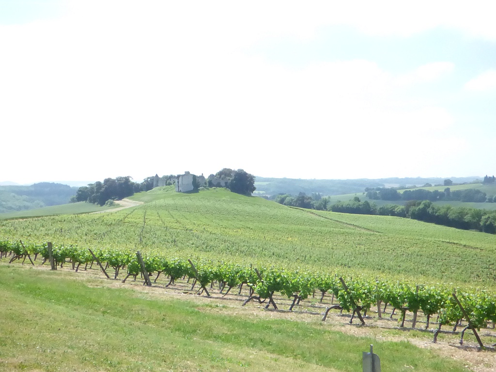 Ouvrez l’œil. Les ruines du château de Pardailhan sont là-haut, au-dessus des vignes. Tout semble paisible... C'est le moment de se mettre au vert ou de voir la vie en rose : deux façons de révéler un même paysage...