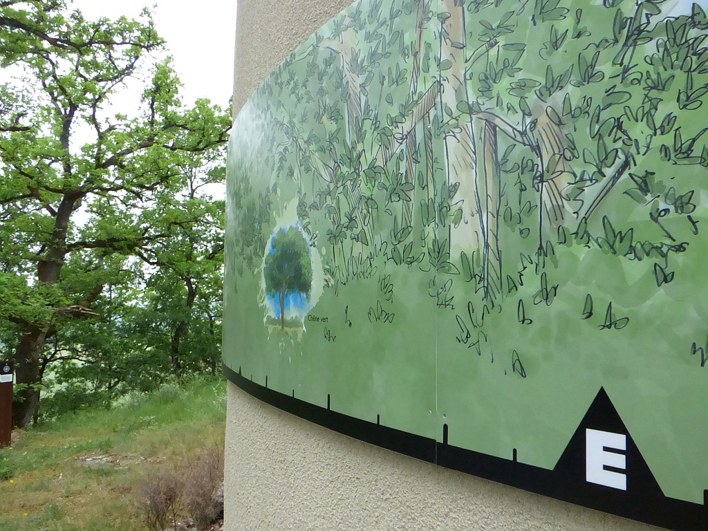 Prendre la route en direction de Montréal, sur 300 mètres, puis monter à gauche par le sentier enherbé. Poursuivre par le chemin blanc jusqu'au château d'eau (suivre le balisage jaune).
