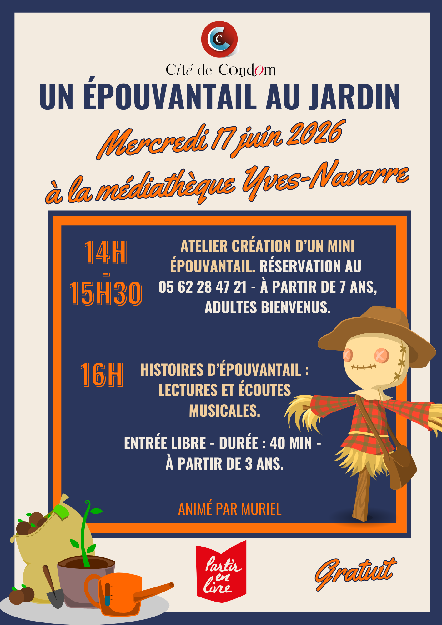 Animations "un épouvantail au jardin" le mercredi 17 juin à la médiathèque à partir de 14h00, animés par Muriel !